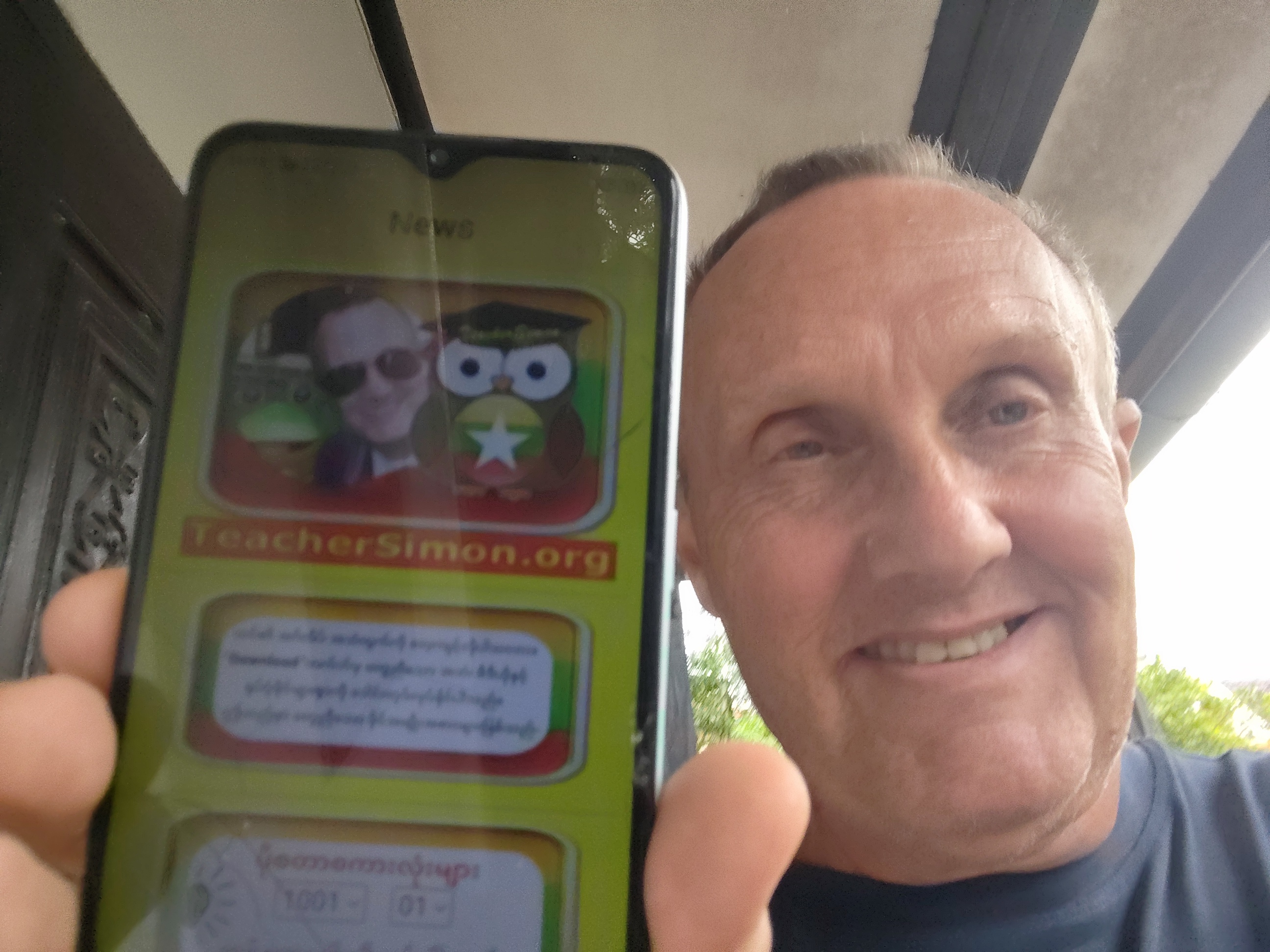 So where am I at in 2026? I'm going on 67 years old, with a bad leg, bad BPH, dicky eyesight and still of course have my bad lungs! But you will still find me either physically in Myanmar, (when the military government lets me in), or working from my cheap condo ($100/month rent!) in neighbouring Cambodia for the benefit of the Myanmar students.Here's a recent photo showing my mobile 'Teacher Simon' app