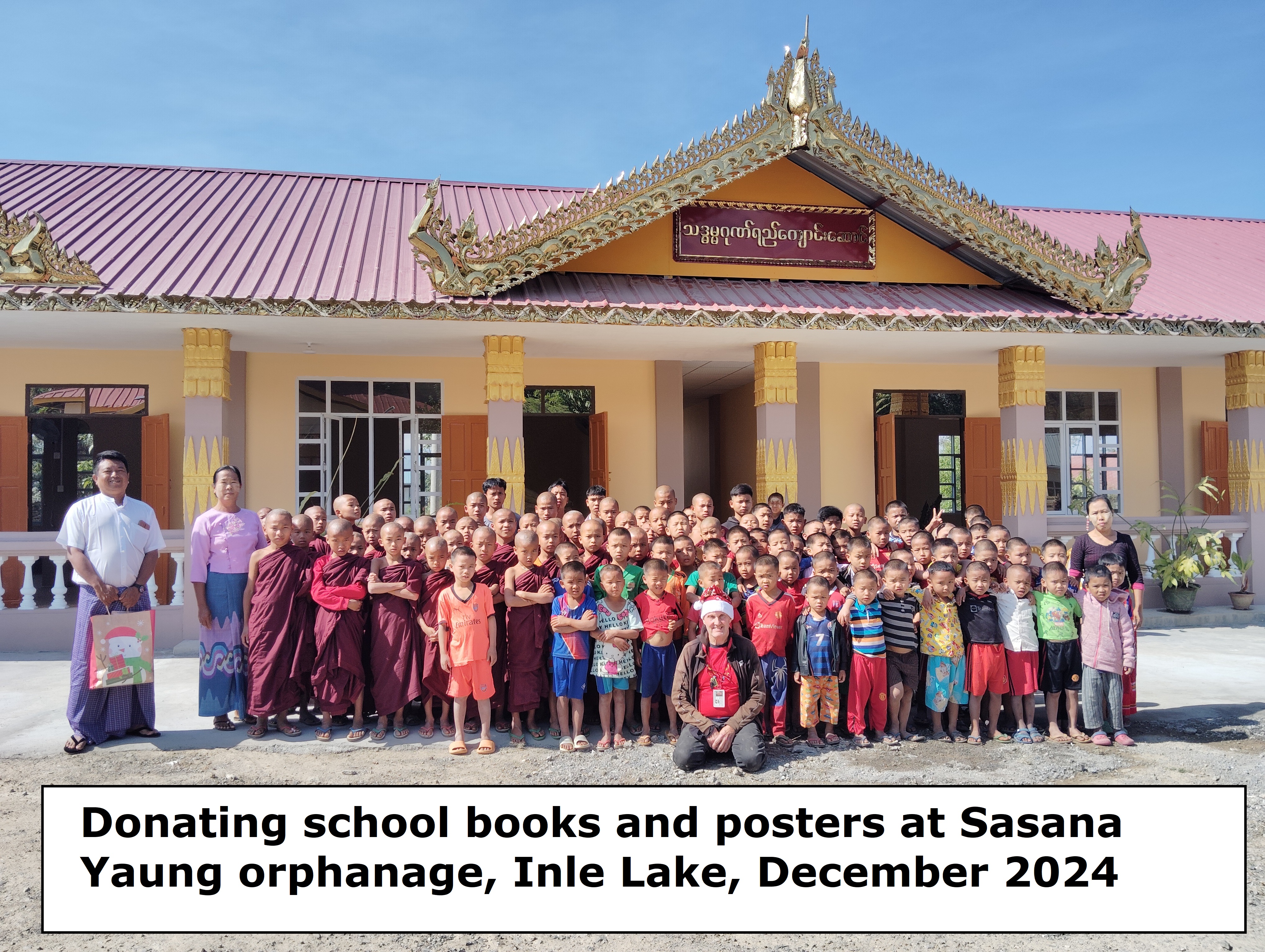 Here are photos from Mandalay (the girls' orphanage), Kalaw (another girls' orphanage in the beautiful Shan Hills, Naypyitaw (the very large Sama orphanage with more than 1,000 kids), Inle Lake (orphanages for boys and also ethic Pao-Oo kids), and Taungyyi (home for mentally and physically disabled young and adults). I personally visited and donated at these places (and many more).